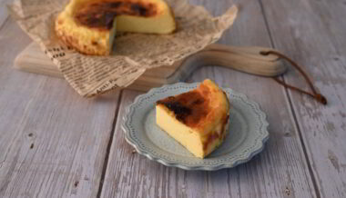 5を3の型に流し込み、170℃に熱したオーブンで50~55分焼きます。粗熱が取れたら型から出し、ケーキクーラーなどにのせて冷まし、冷蔵庫で冷やします。好みの大きさに切り分けます。