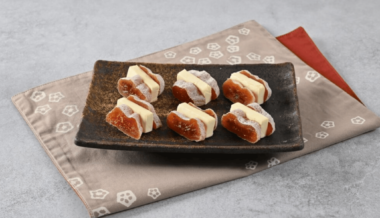 クリームチーズの和風アミューズ3種<スモークサーモン> フィリー6P 1箱で3種類の簡単なおつまみが楽しめます。見た目も鮮やかで、おもてなしにもぴったり! 材料 (3人分) フィラデルフィアクリームチーズ6Pプレーン 2個 スモークサーモン 3枚 大葉 3枚 大根 60g 作り方 クリームチーズは縦3等分にし、スモークサーモンと大葉は半分に切ります。 大根は6枚の薄い輪切りにし、塩(分量外)をふって軽くもみ、水で洗って水気をよく切ります。 大根、スモークサーモン、大葉、クリームチーズを順にのせてようじで止めます。