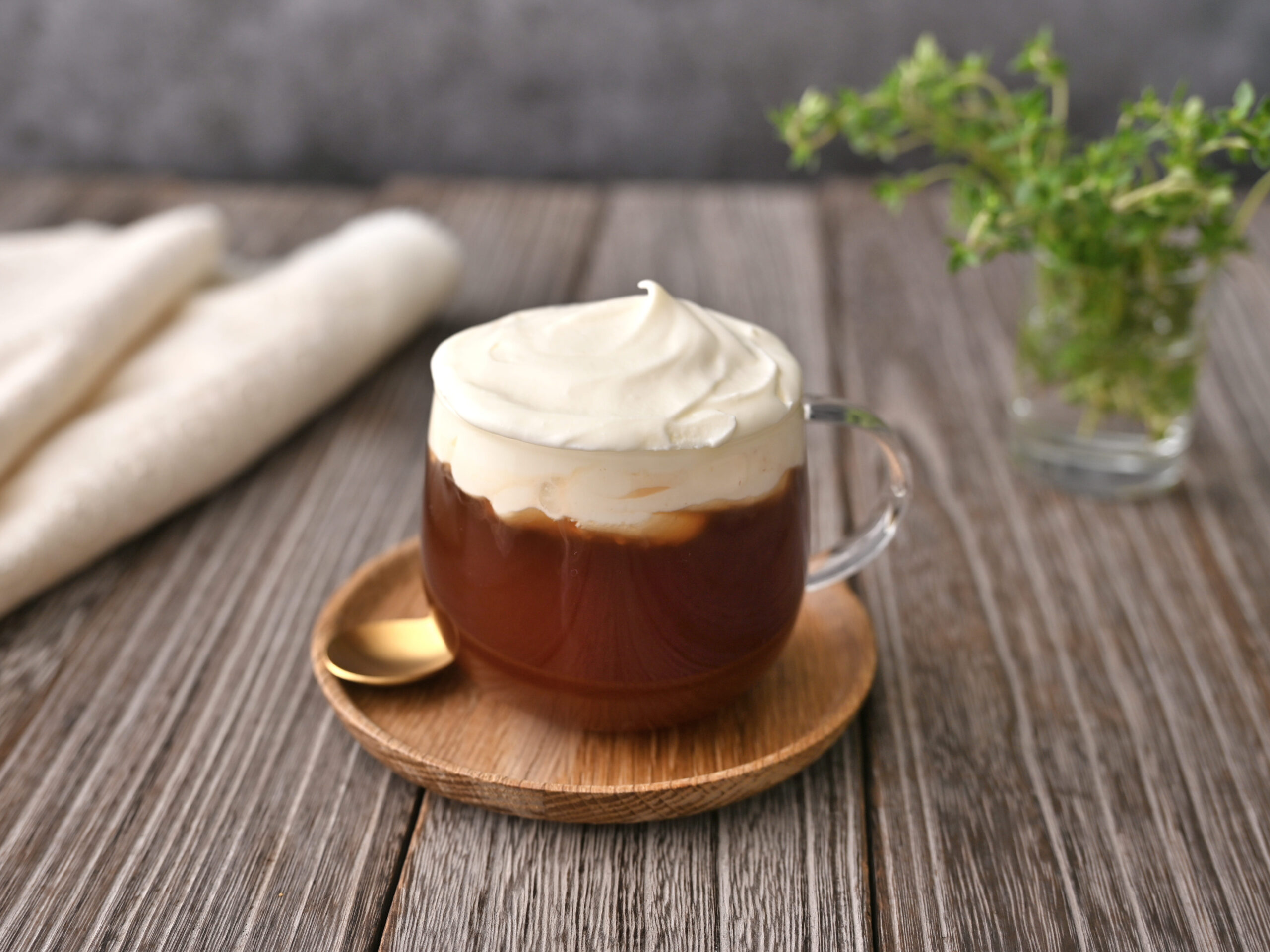 紅茶の上にふわふわのチーズクリームがのったデザートティー。クリームの優しい甘さにチーズの程よい塩味がクセになる一品です☺